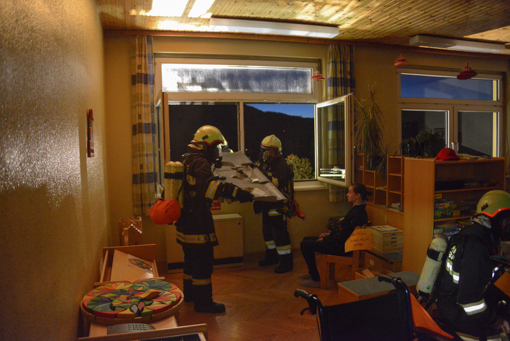 Am Freitag, 05 Okt 2012, führten wir in der Sonderschule Micheldorf unsere Monatsübung durch. Die Übungsannahme war: Vollbrand des Turnsaals, Verrauchung des Hautpgebäudes und dadurch eingeschlossenen Personen im 2. Stock. Mit den Kräften von TLF 1 und TLF 2 wurde ein Schutzriegel mit 2 C-Rohren, zur Brandausbreitung auf das Hautpgebäude aufgebaut. 1 AS Trupp machte sich zeitgleich auf die Suche nach den 4 vermissten Personen. Diese konnten rasch gefunden werden. Mit der Drehleiter Kirchdorf konnte eine schonende und sichere Bergung durchgeführt werden. 2 Personen waren liegend zu retten, mit dabei auch die Übungspuppe Rescue Randy der Fa Rosenbauer mit naturgetreuen Gelenksbewegungen und fast 50kg Eigengewicht. Die Wasserversorgung wurde von der Krems durch die FF Altpernstein sichergestellt. So konnte auch der neue mobile Wasserwerfer zur Brandbekämpung des Turnsaals eingesetzt werden.