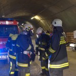 Wir sind mit einem Löschzug, (KDO, TLF und LFB) und dem LUF 60 in der Alarmstufe 2, Fahrtrichtung Graz, eingeteilt. Vom Bereitstellungsraum wurde das TLF zum Tunnelportal zum Atemschutzeinsatz beordert. Das KDO und das LFB wurde in einer Zubringerleitung vom Stausee bis zum Fluchtstollen eingesetzt. Gesamtlänge 1.800m. Das LUF 60 musste einsatztaktisch nicht eingesetzt werden.