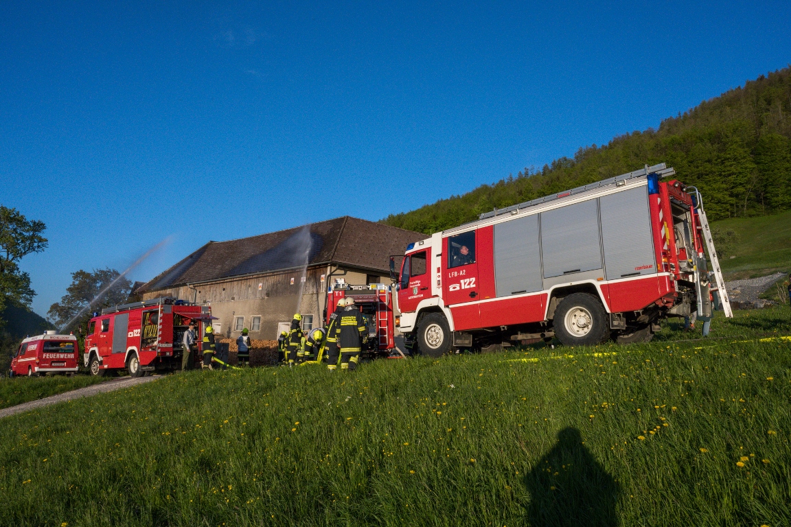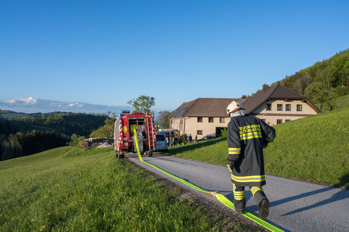 Die Gesamtübung im Mai wurde in Altpernstein abgehalten. Brand landwirtschaftliches Objekt war die Annahme. Geübt wurde am Objekt Hintertragler alles was dazu gehört. Heustockbrand, Personensuche und -rettung, Atemschutzeinsatz (2 Trupps) mit Innenangriff. Zubringerleitung 600m und 50m Höhenunterschied, Außenangriff. Eingesetzt waren 2 TS, Fördermenge 1000l/min über einen längeren Zeitraum.