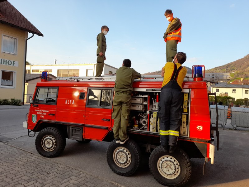 In den Jugendstunden am 21. und 28. April 2021 standen Gemeinde- und Fahrzeugkunde auf dem Programm. Wir sind mit dem Pinzgauer das Gemeindegebiet abgefahren, da ihm ohnehin wieder eine Bewegungsfahrt gut tat. Anschließend haben wir die gesamte Beladung (bis auf das Dach hinauf) erkundet.
