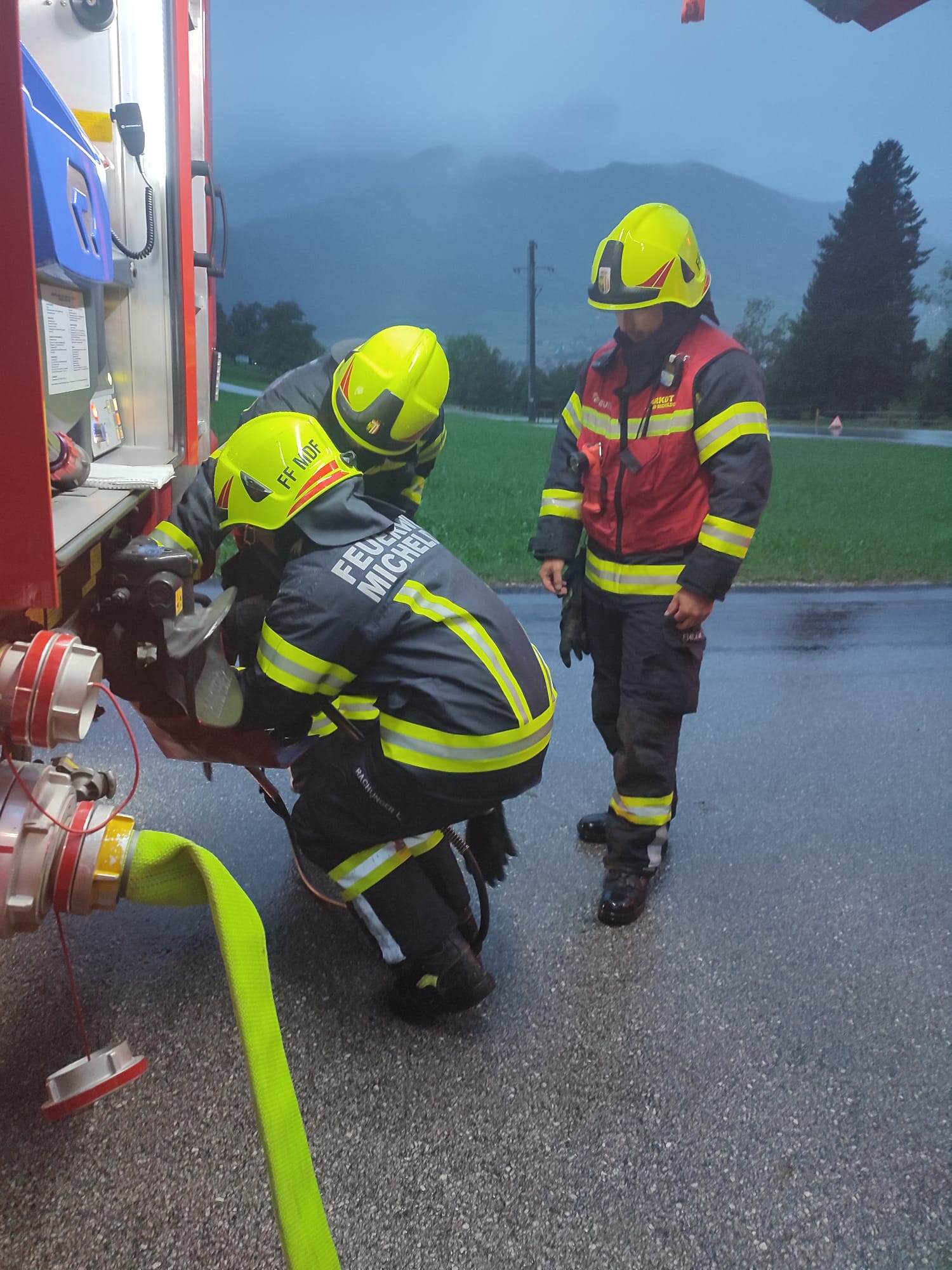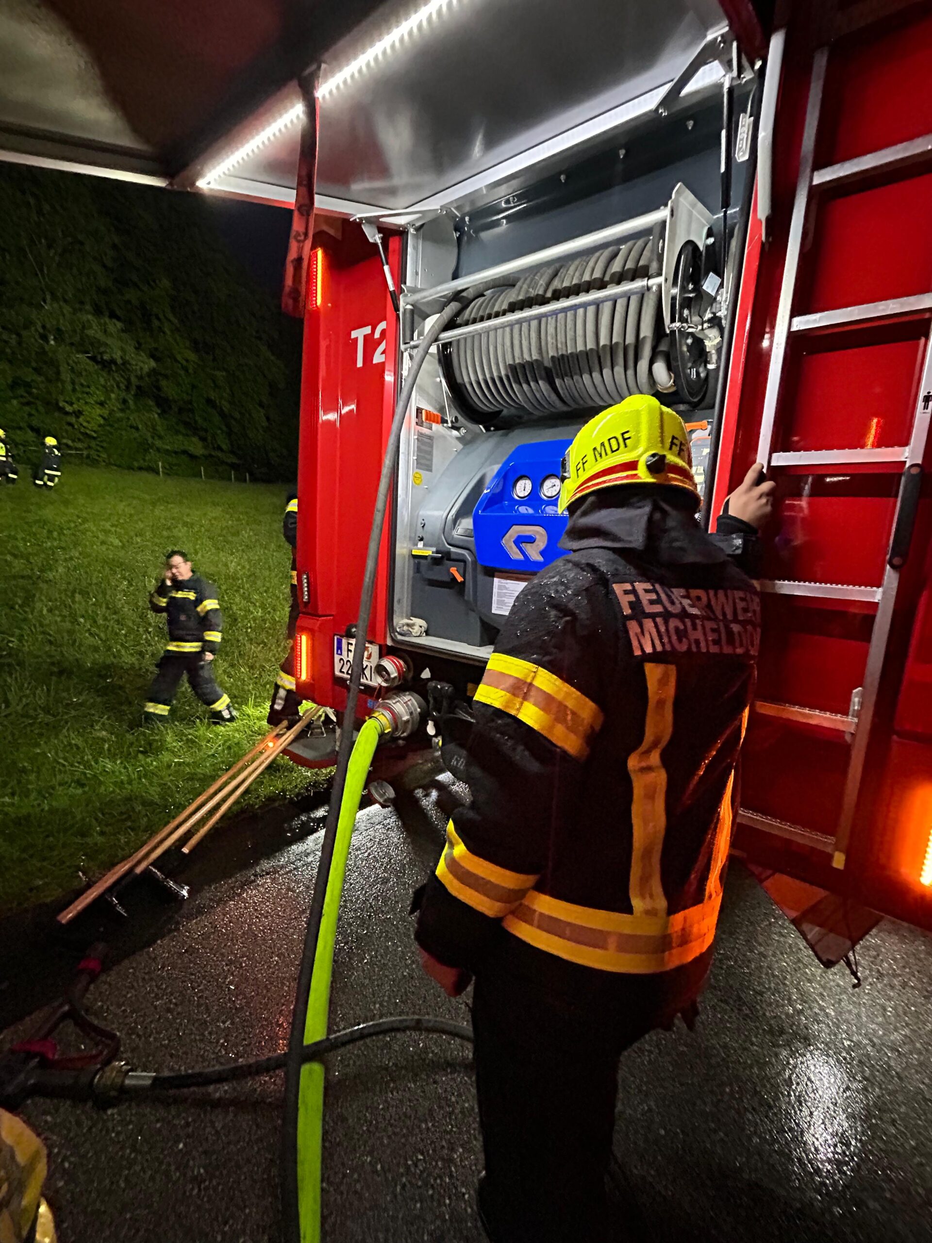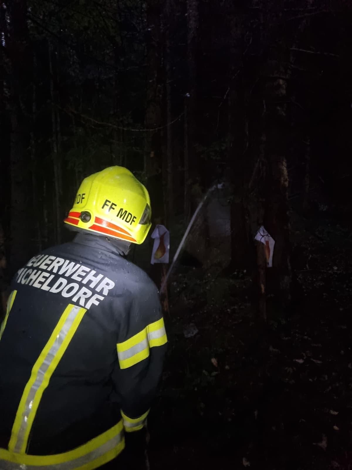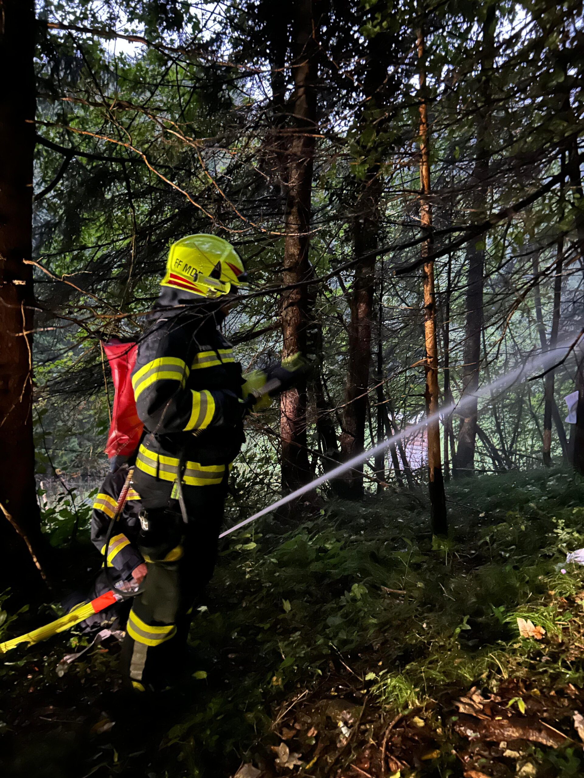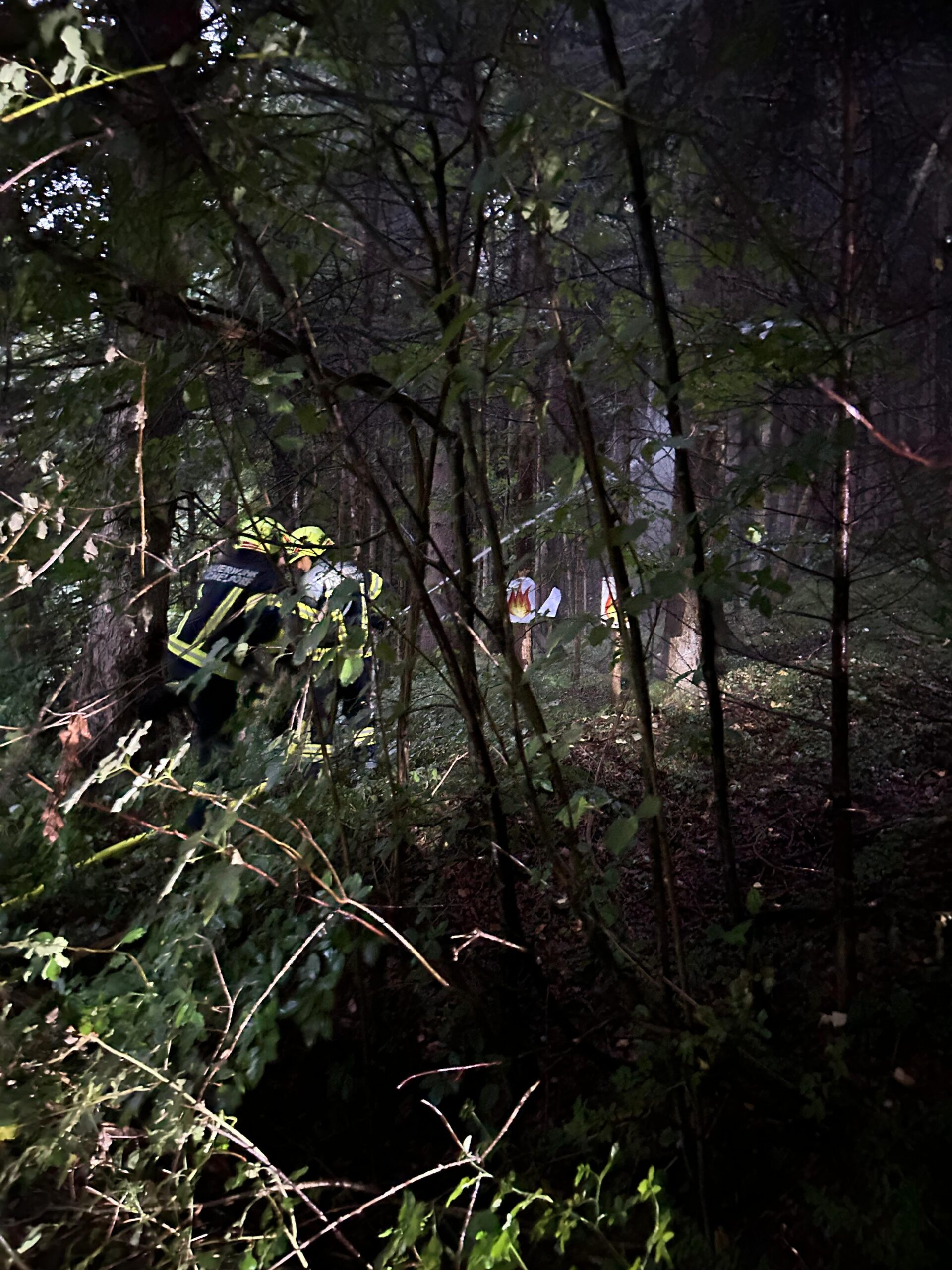 Mit KDO, TLF und RLF machten wir uns auf den Weg nach Atzelsdorf, wo uns ein Waldstück als Übungsgebiet zur Verfügung stand. Das Szenario: Im Wald war ein Brand ausgebrochen. Daher wurde ein Pendlerverkehr für die Tanklöschfahrzeuge eingerichtet, während sich zwei Trupps auf den ersten Löschangriff vorbereiteten.