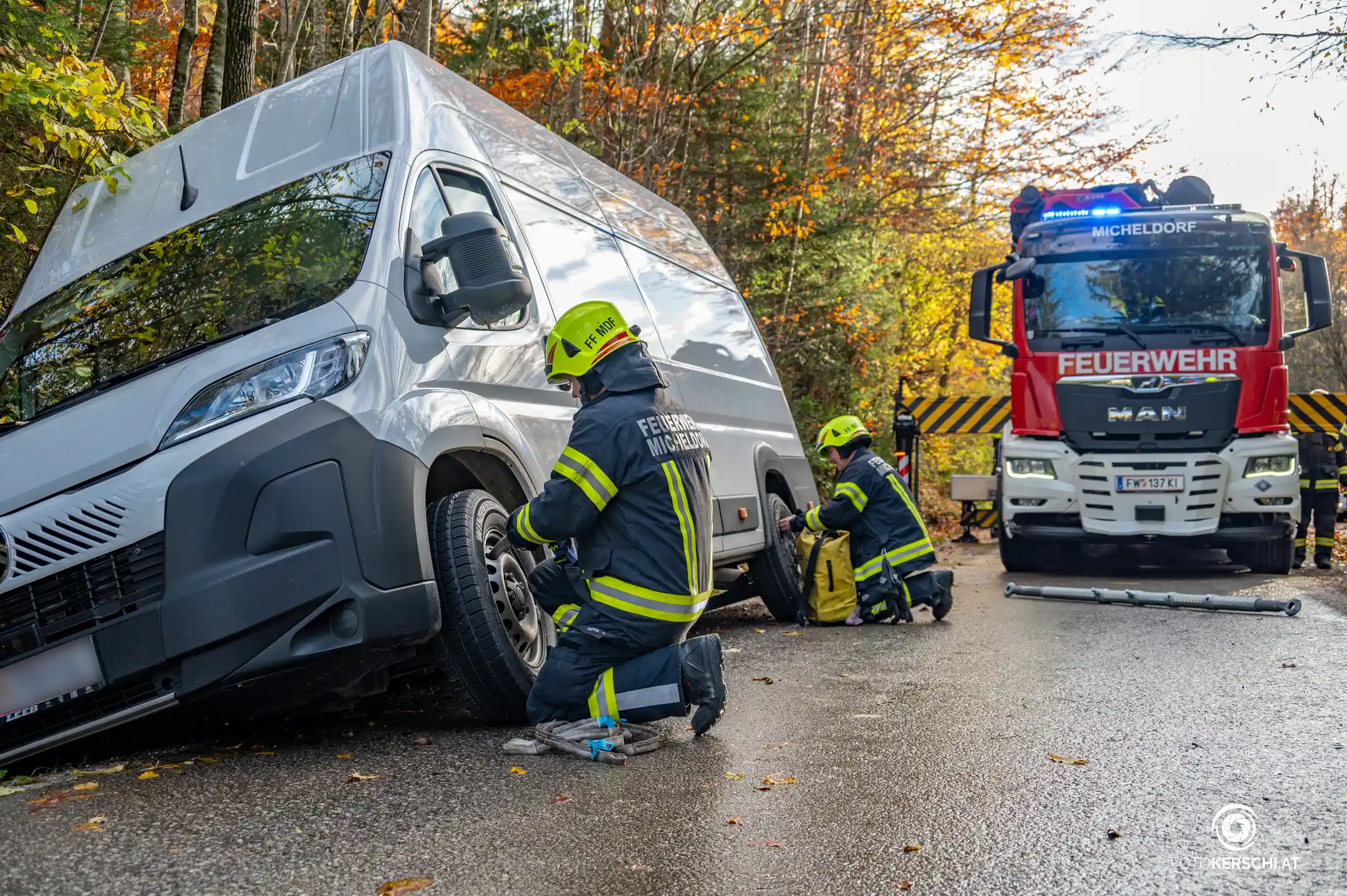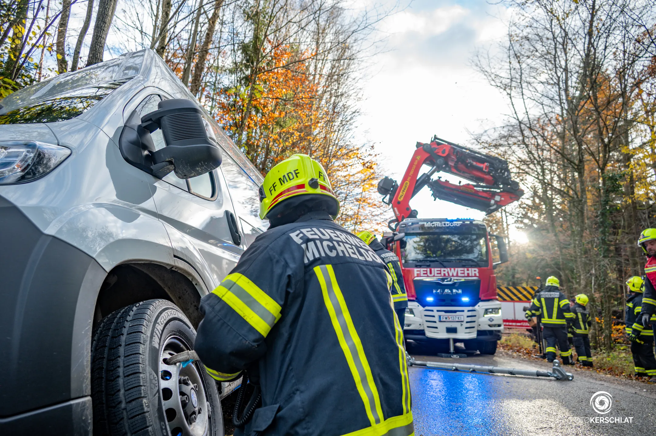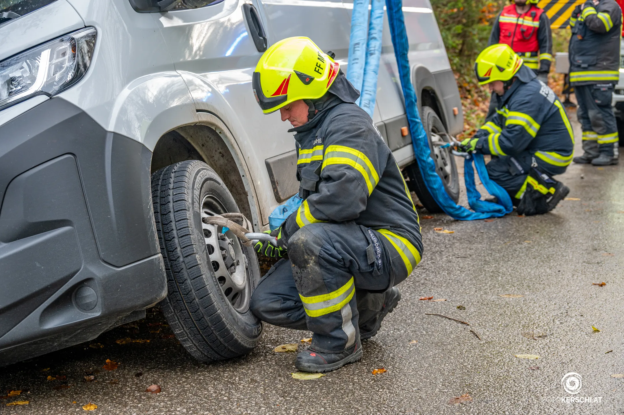 Da das Fahrzeug aus eigener Kraft nicht mehr befreit werden konnte, wurde der Technische Zug der Feuerwehr Micheldorf zur Unterstützung nachgefordert.