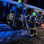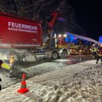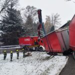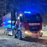 Nur wenig später, um 07:13 Uhr, erfolgte die nächste Alarmierung – erneut zu einer LKW-Bergung. Ein Lastwagen war mit dem Anhänger von der Straße abgekommen und drohte umzustürzen. Am Einsatzort sperrten wir die Straße und unterstützten die Sicherungs- und Bergungsmaßnahmen. Mit unserem WLF, der Seilwinde des SRF sowie durch die Mithilfe des LKW-Lenkers wurde der Anhänger stabilisiert, mit Holz unterlegt und schließlich wieder auf die Fahrbahn gezogen.
