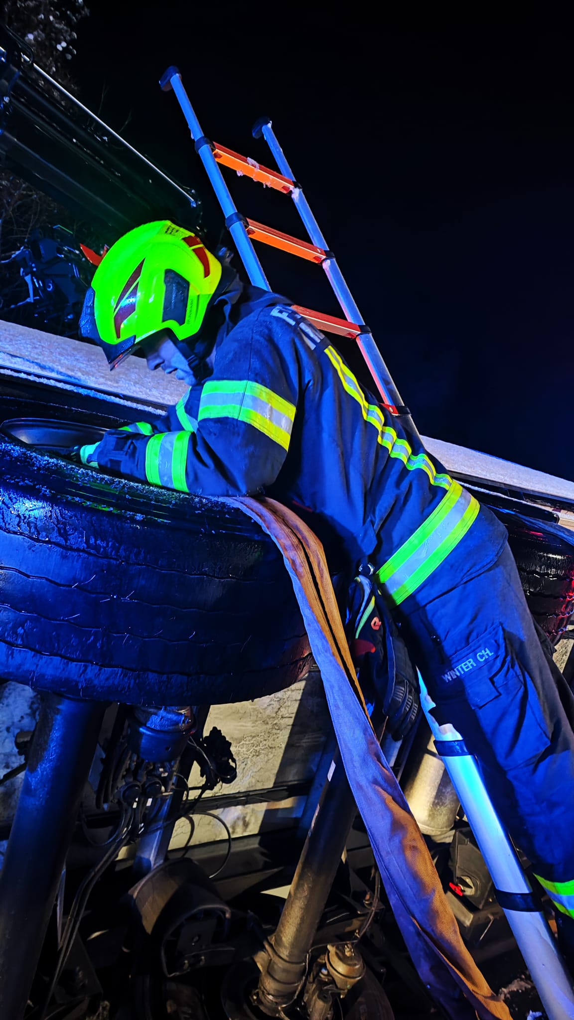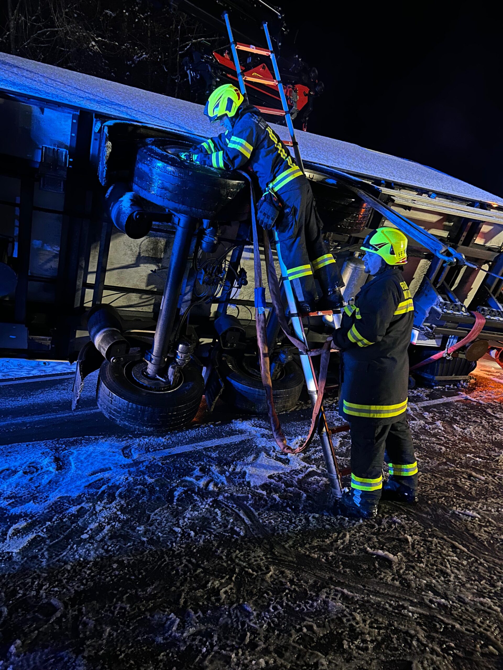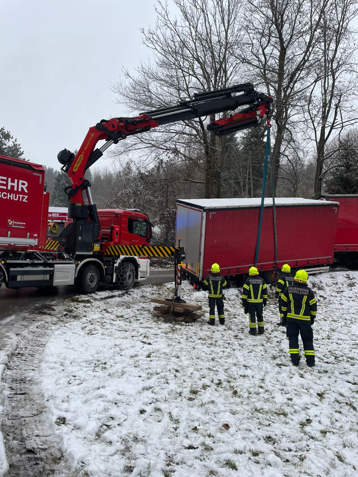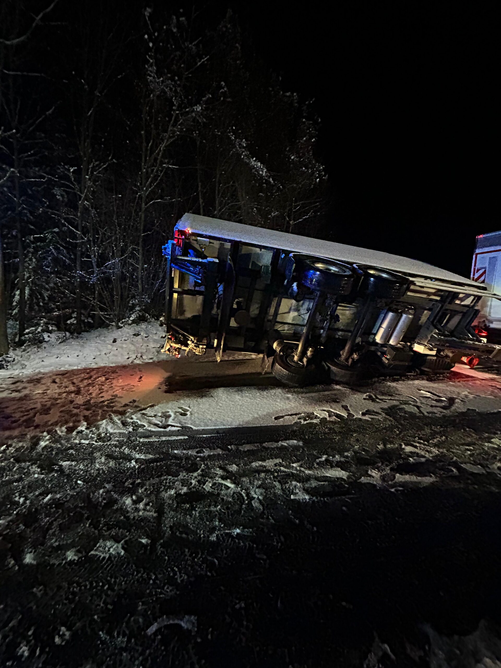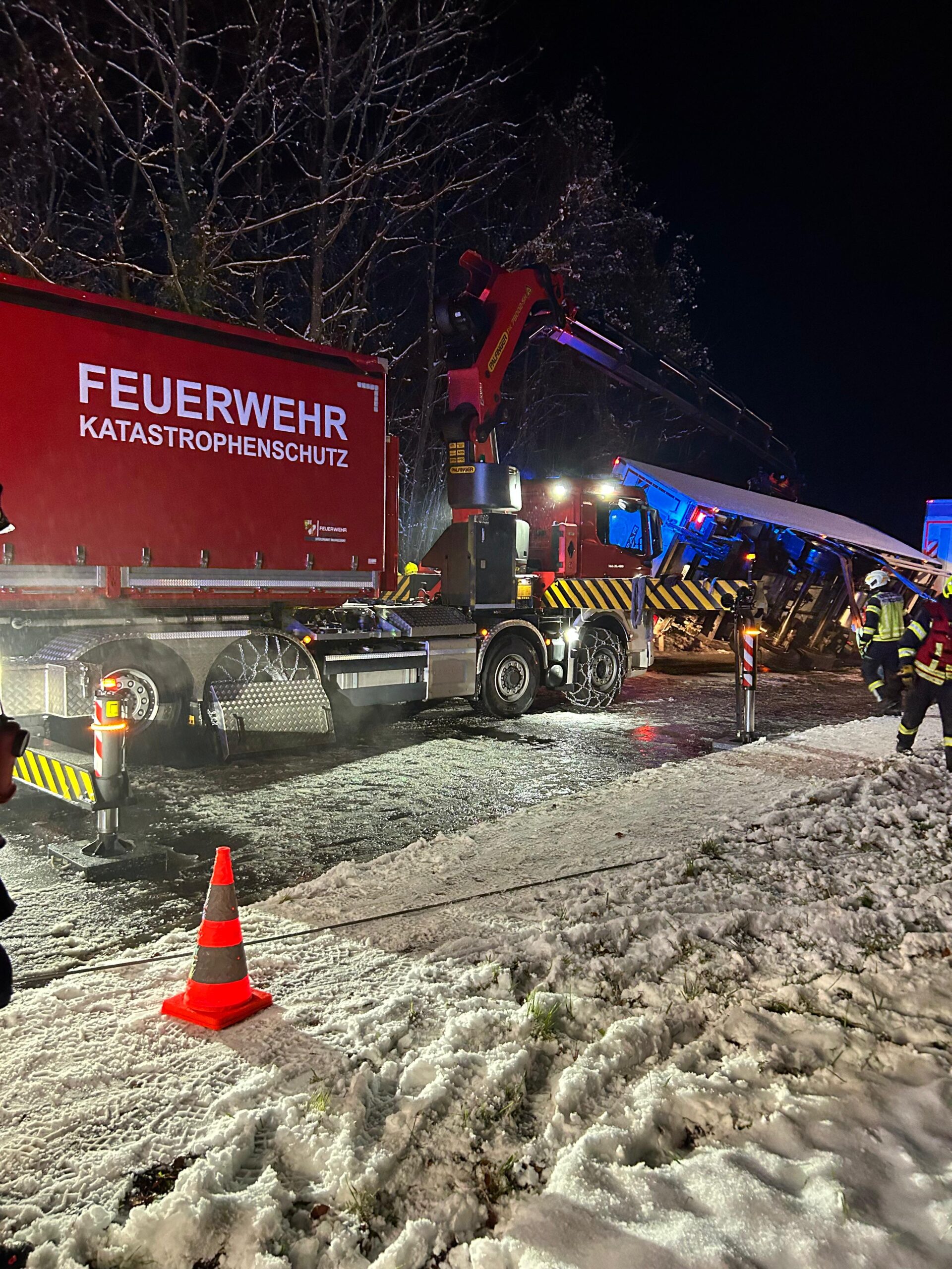 Am Dienstag, den 25. November 2025, wurden wir um 04:46 Uhr zu einer LKW-Bergung alarmiert. Ein Anhänger war nach einer Kurve umgestürzt.