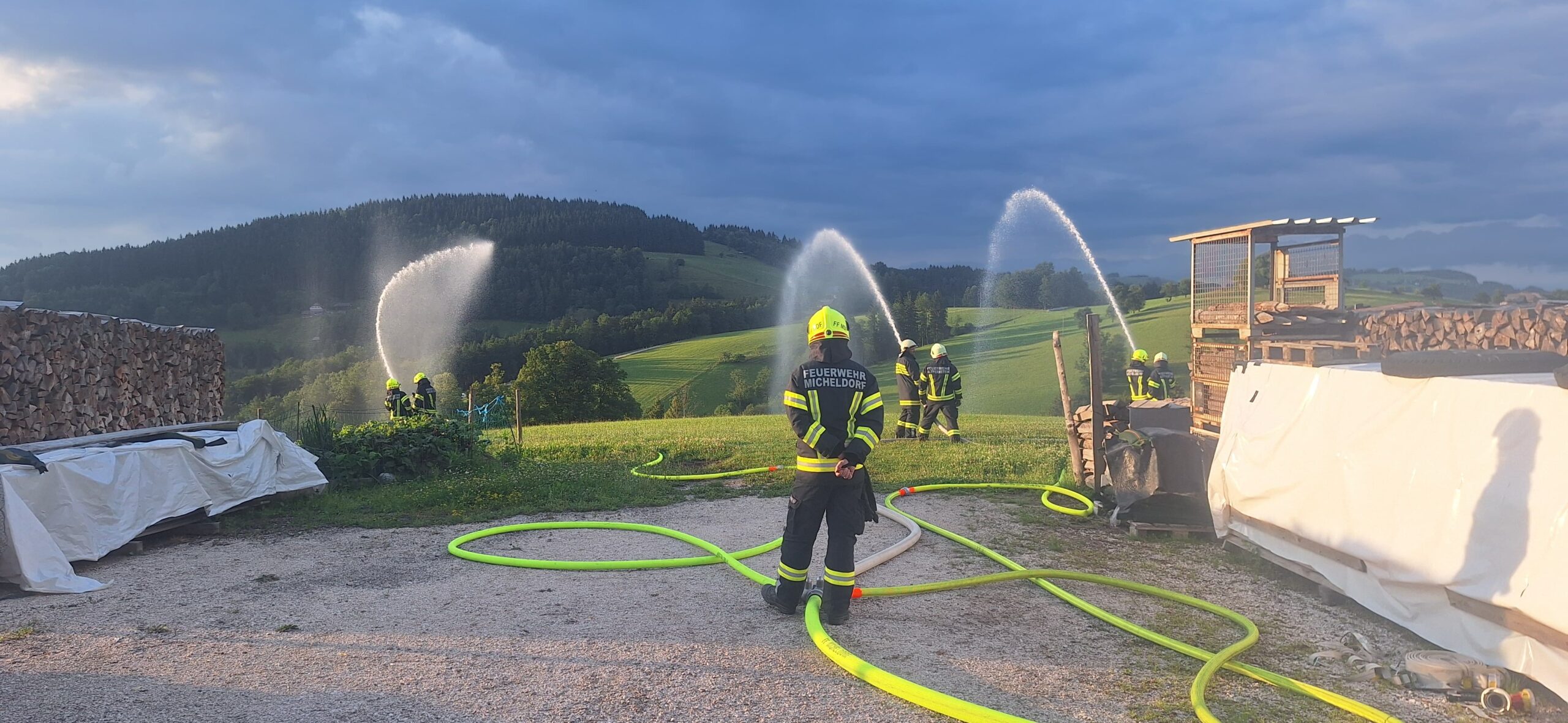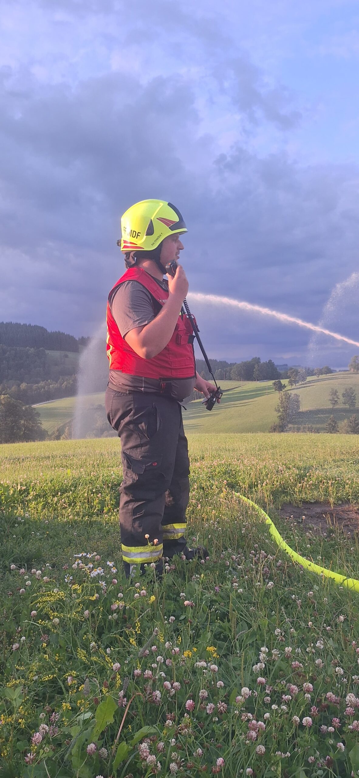 Am Freitag, den 11. Juli 2025, fand unsere siebte Monatsübung statt – dieses Mal gemeinsam mit der Feuerwehr Altpernstein. Übungsannahme war ein Brand eines landwirtschaftlichen Objekts, wobei der Fokus auf einer langen Wegstrecke zur Löschwasserversorgung lag.