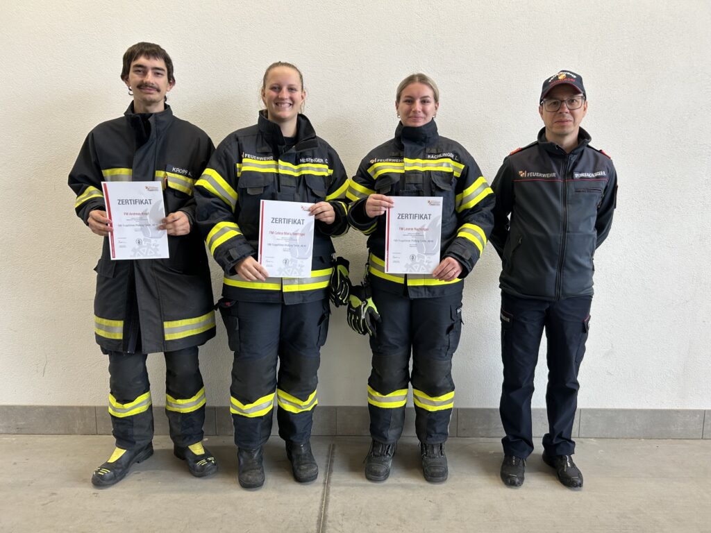 Drei Kameradinnen und Kameraden unserer Feuerwehr traten dabei zu ihren letzten Modulen an.