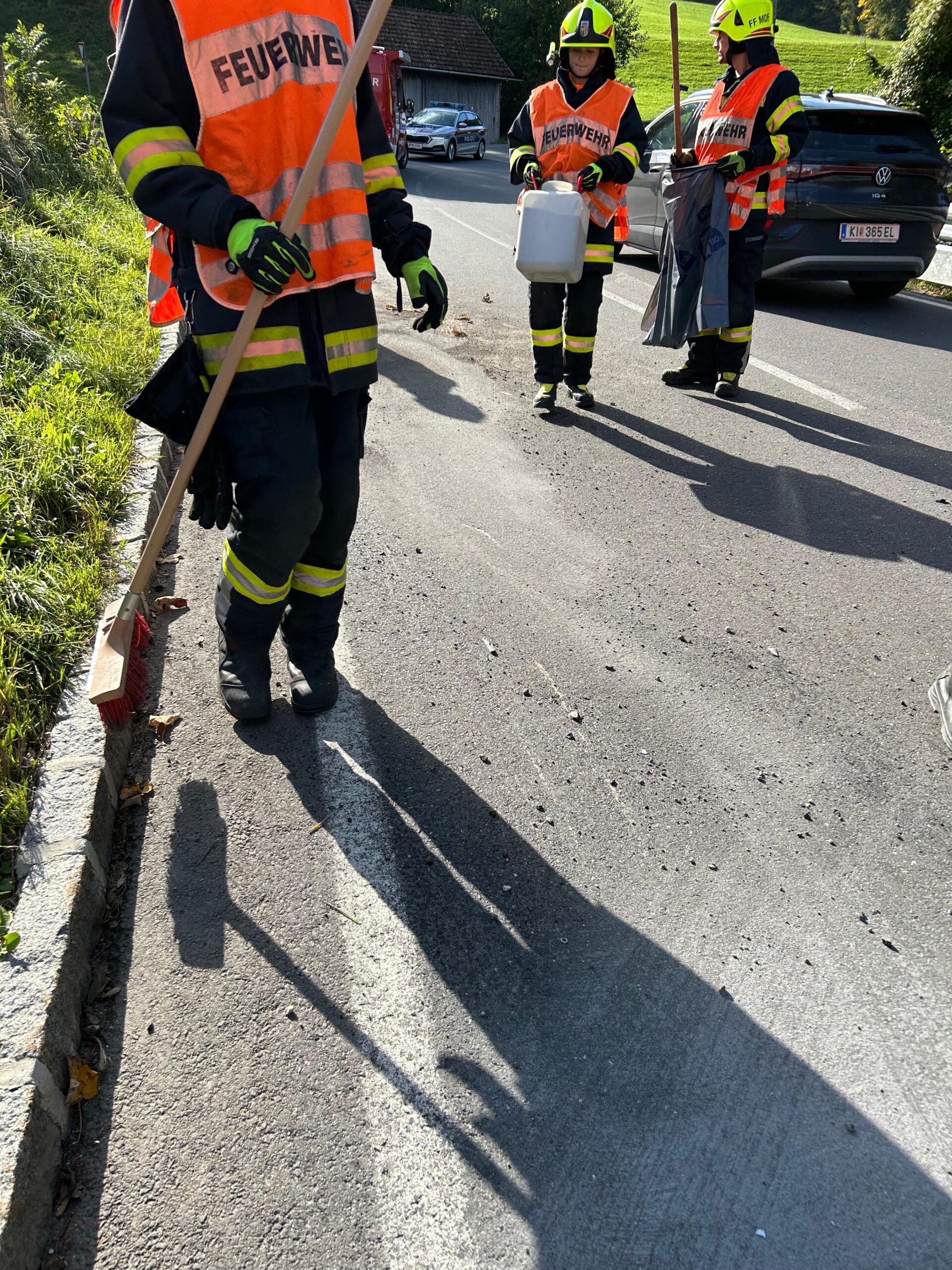 Am Sonntag, den 12. Oktober 2025, wurden wir um 14:03 Uhr zu einem Einsatz mit dem Alarmtext „Verkehrsunfall Aufräumarbeiten“ alarmiert. Es handelte sich um einen Motorradunfall.