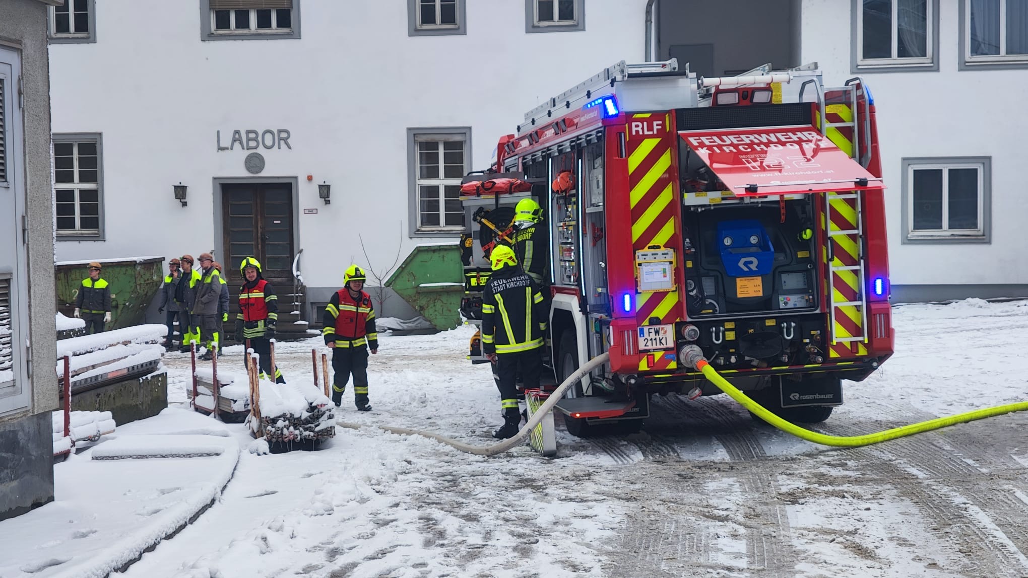 Am Freitag, den 20. Februar 2026, wurden wir um 10:03 Uhr von der FF Kirchdorf zu einem Einsatz mit dem Alarmstichwort „Brand Gewerbe“ nachalarmiert, um einen Atemschutztrupp bereitzustellen.