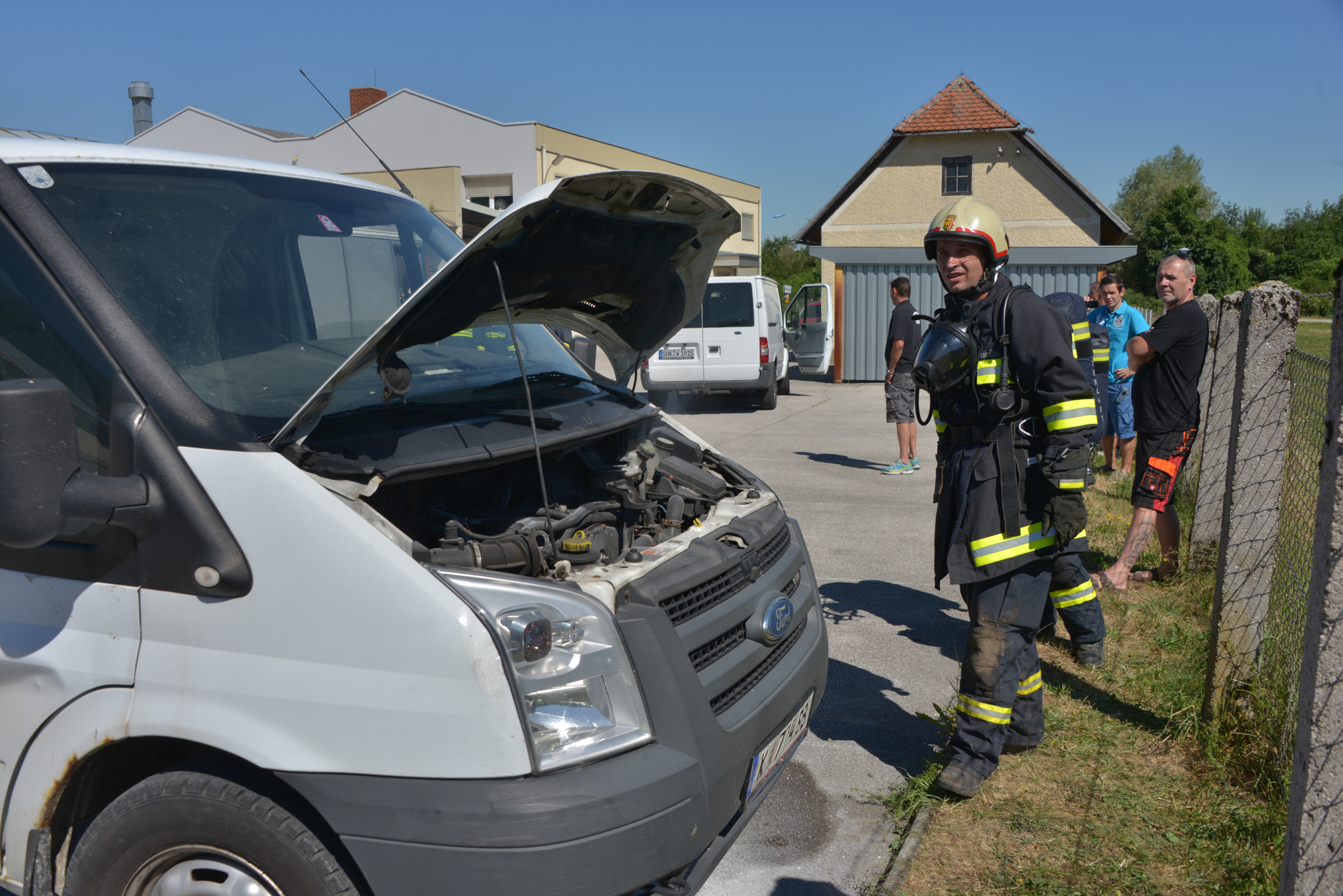 eintreffen der Feuerwehr mit 2 Handfeuerlöschern erfolgreich bekämpft. Ebenso war bereits die Batterie abgeklemmt. Mit dem HD Rohr kühlten wir die noch rauchende Dämmung und kontrollierten den Motor- und Innenraum. Der Einsatz konnte somit rasch abgeschlossen werden.